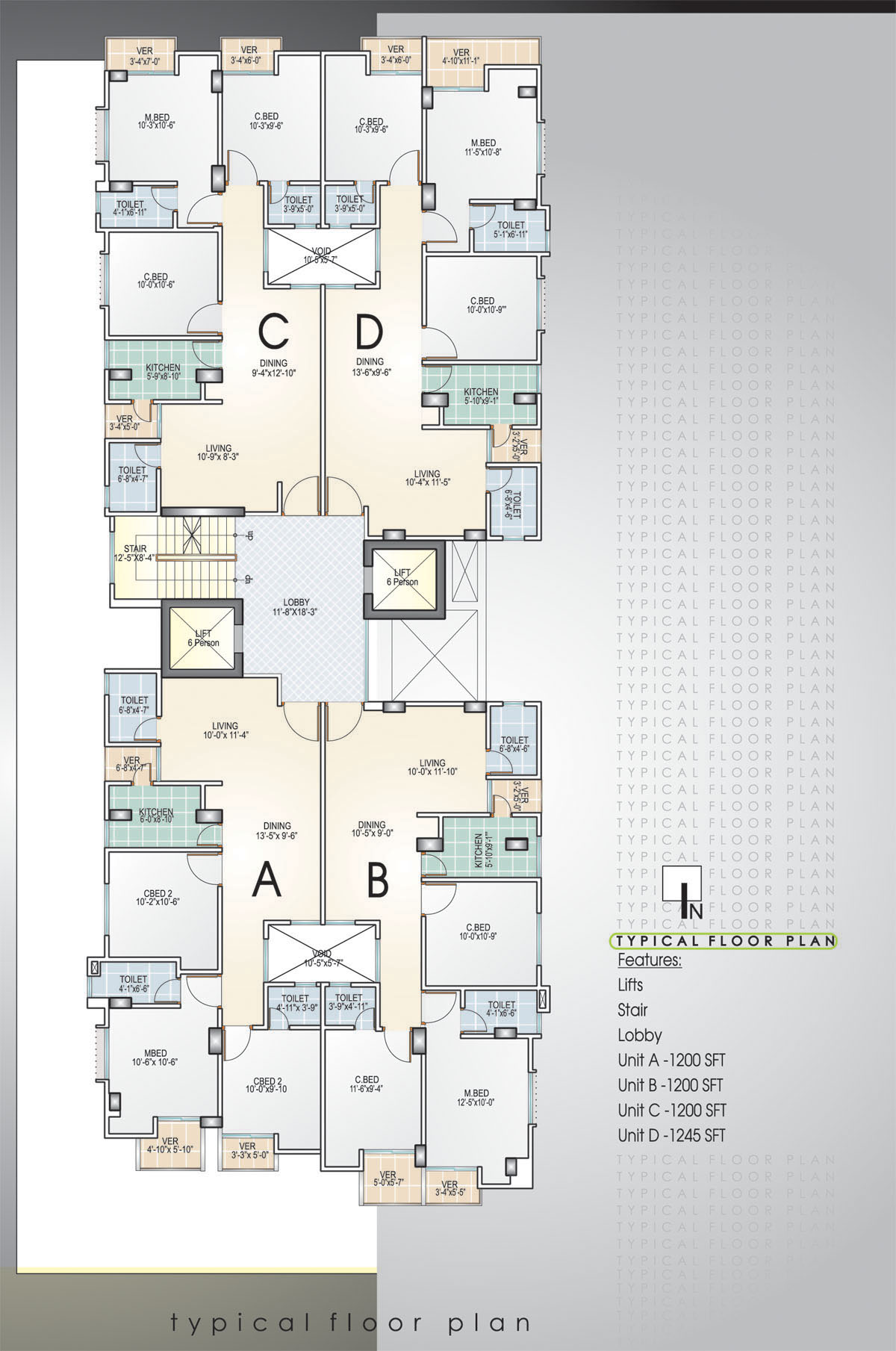 Type C - 1300 sft, Type D - 1300 sft