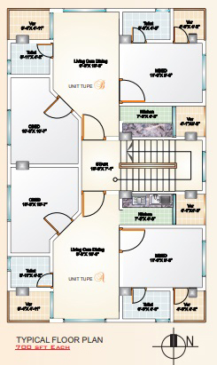 Type A - 700 sft, Type B - 700 sft